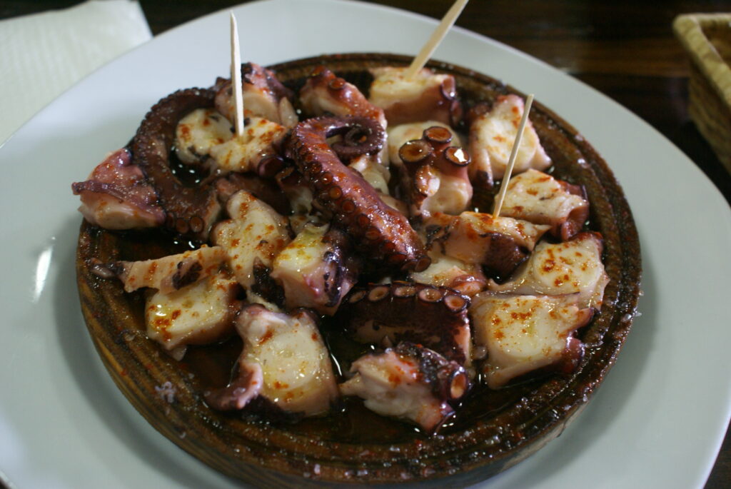 Continuamos hacia Palas de Rei. El sol ha salido y hace calor. El camino es rompepiernas total. Paramos a comer en Melide: ración de pulpo en Ezequiel, ¡espectacular!