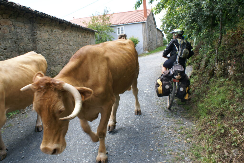 Salimos de Sarria con la niebla típica gallega. El camino aquí cambia, hay mucha más gente, estamos en los últimos 100 km. El terreno es un continuo sube y baja por «corredoiras» y pistas.