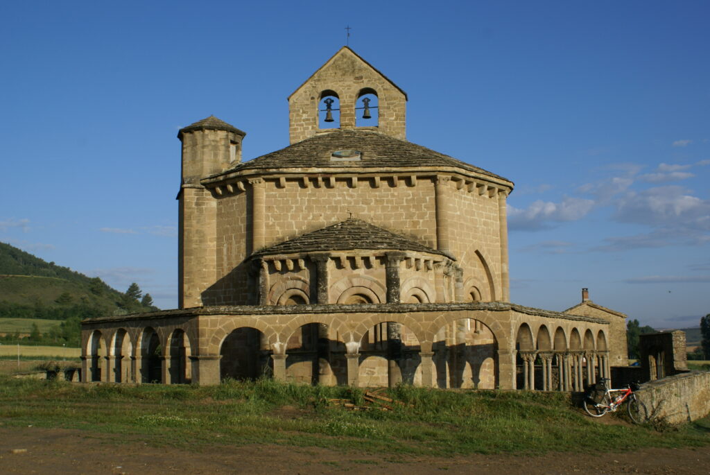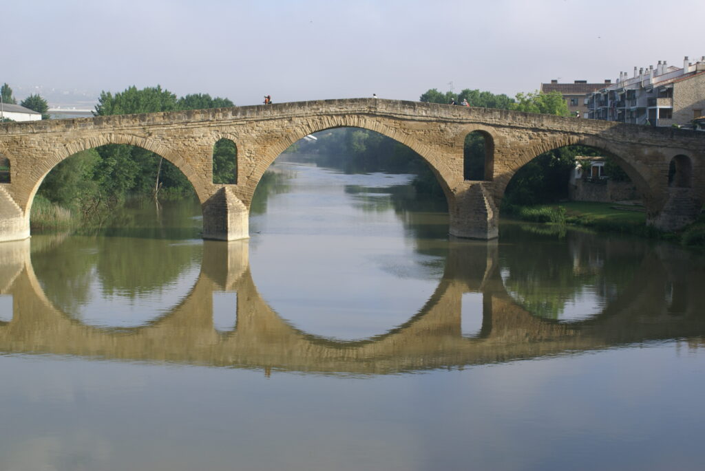 A las 7 ya estábamos en marcha y paramos a desayunar en Campanas, apenas saliendo de Tiebas. Tomamos la carretera intentando evitar el camino por el agua caída anoche. Visitamos la ermita de Santa María de Eunate y proseguimos camino hasta Puente la Reina para cumplir la etapa de ayer.