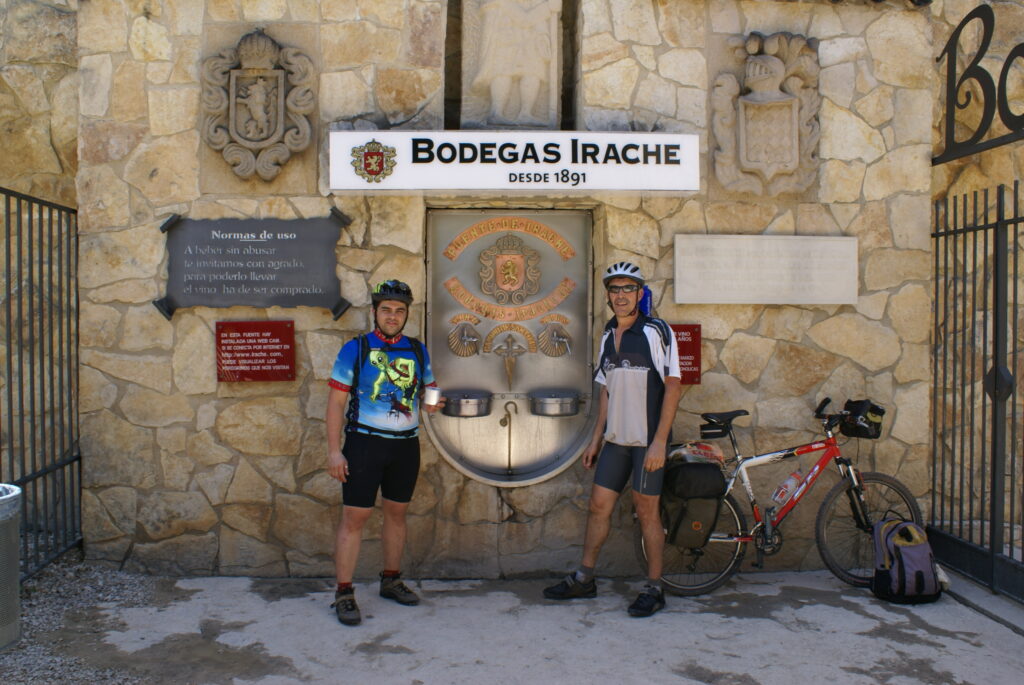 Paramos a comer en la Fuente del vino de Irache. Seguimos ruta con idea de llegar a Logroño pero pasado un rato desistimos porque eran ya las cuatro y nos quedaban 30 kilómetros. Llegamos a Los Arcos, vimos posibilidad de lavar ropa y secarla porque era buena hora. Pasamos la tarde en Los Arcos relajados y descansando para mañana.