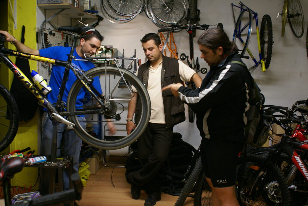 Pasado ese punto comenzamos a bajar hasta Burgos donde empezamos a buscar la tienda donde reparamos las bicis. Cambio de radio, rueda delantera y ajuste de cambio en la mía y ajuste y cambio de pedales en la de Paco.