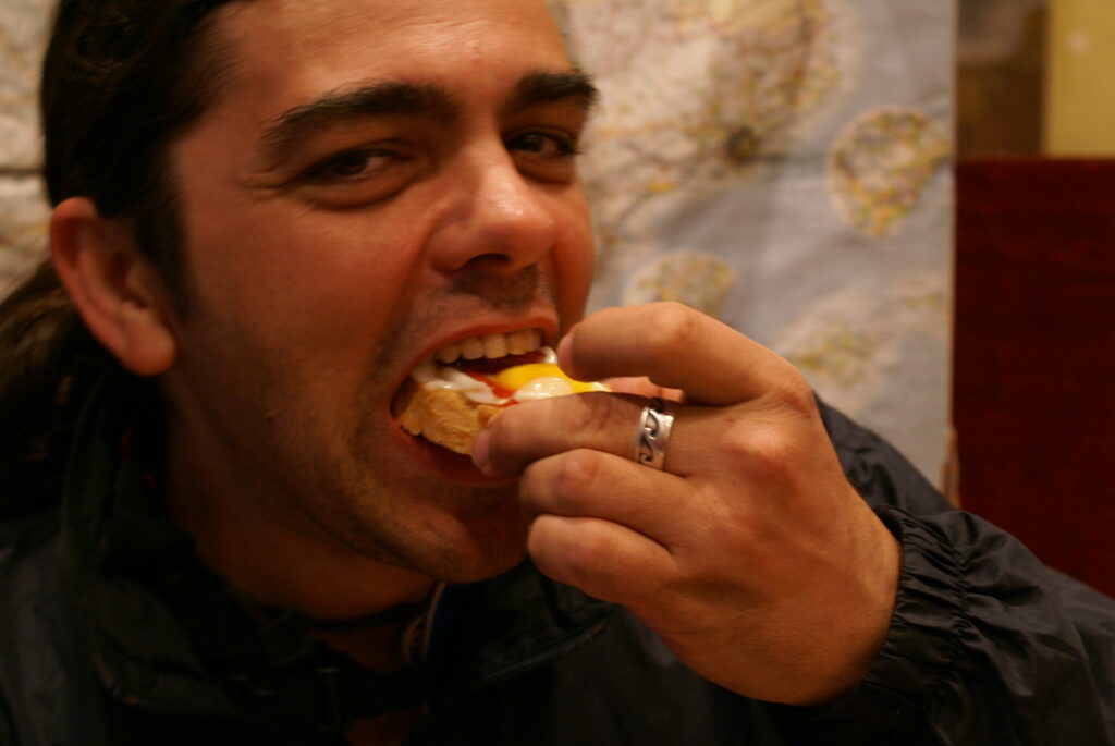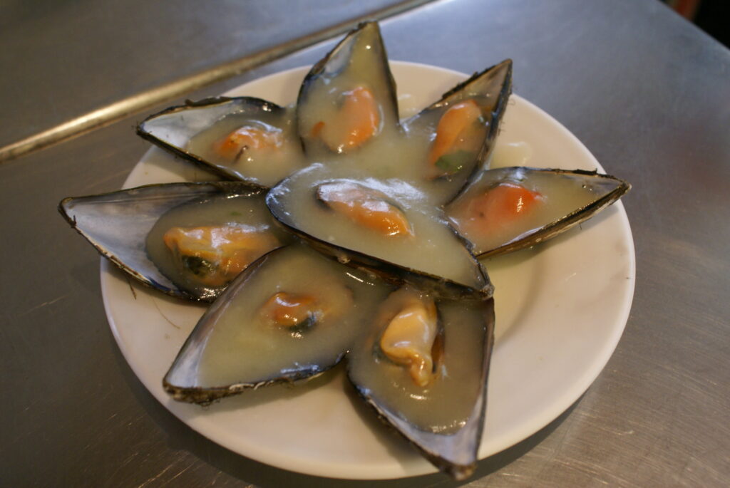 Terminamos a las 12:30 y fuimos a tomar algo por Burgos. Llovía como por la mañana, así que las tapas y la tranquilidad estaba justificada, ya que teníamos que hacer tiempo. «La Mejillonera», unos cojonudos y un obús hicieron nuestras delicias gastronómicas.