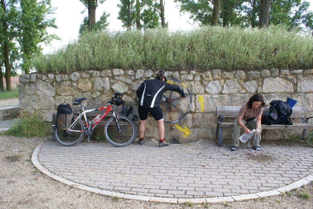 Una dura y larga subida, aunque merecía la pena. A partir de ahí mucho llaneo, sube y baja constante hasta Frómista, donde llegamos acompañados por el Canal de Castilla.