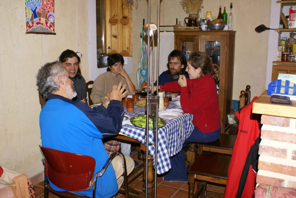 Comimos con las «fuerzas vivas» del pueblo en el club social, una caseta acondicionada como cocina y comedor donde almorzamos borrajas y carne guisada.