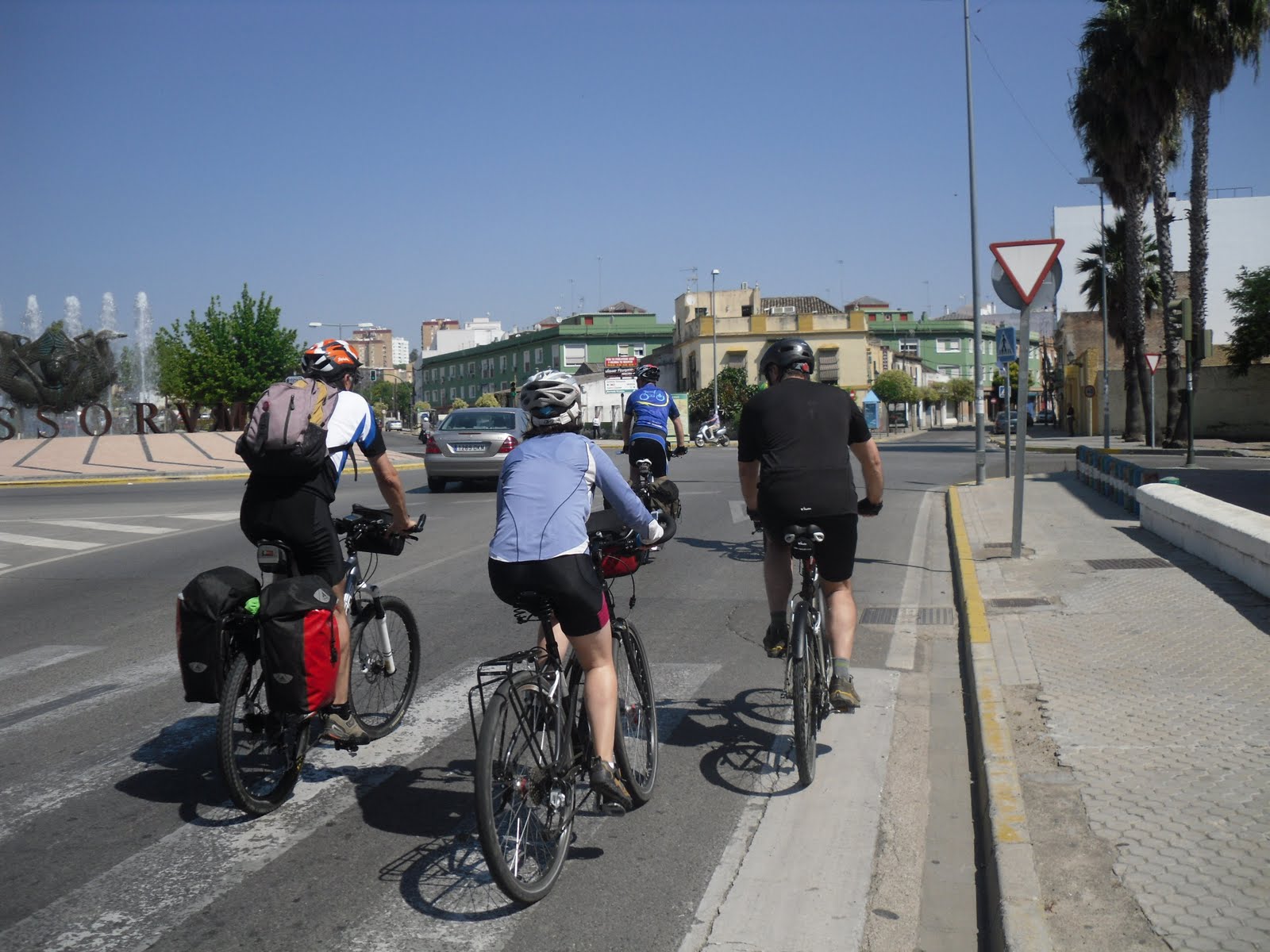 Después de estar toda la noche conduciendo, Carol y yo llegamos a Tomares rozando las 9 de la mañana, con tiempo justo de soltar la bici e ir a buscar a Paco y Jose María que ya estaban esperando en el aeropuerto.