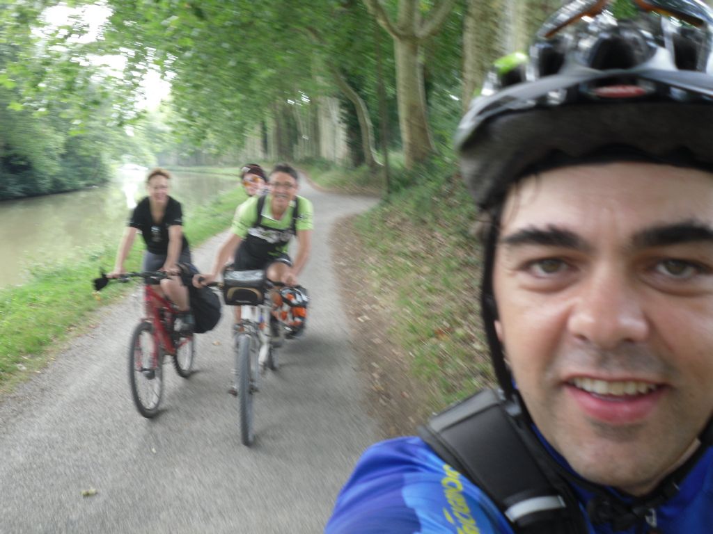 Hoy estamos haciendo los últimos kilómetros del Canal du Midi, y pronto tocaremos la cima de la ruta… hemos subido 200 metrazos en cuatro días… Aquí se abren las aguas, y parte van hacia el Mediterráneo y otra parte al Atlántico. Hasta ahora todas las esclusas eran hacia arriba a partir de ahora son todas hacia abajo… de todas formas, ya lo dice el dicho: cualquier esclusa es buena.
